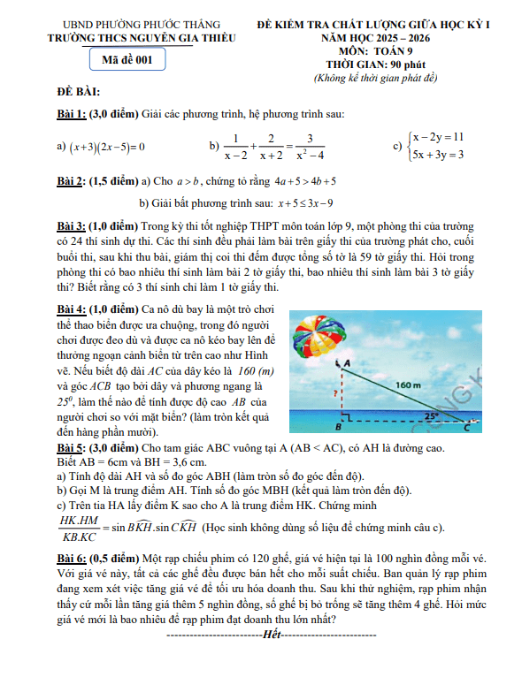 Đề giữa học kỳ 1 Toán 9 năm 2025 – 2026 trường THCS Nguyễn Gia Thiều – TP HCM