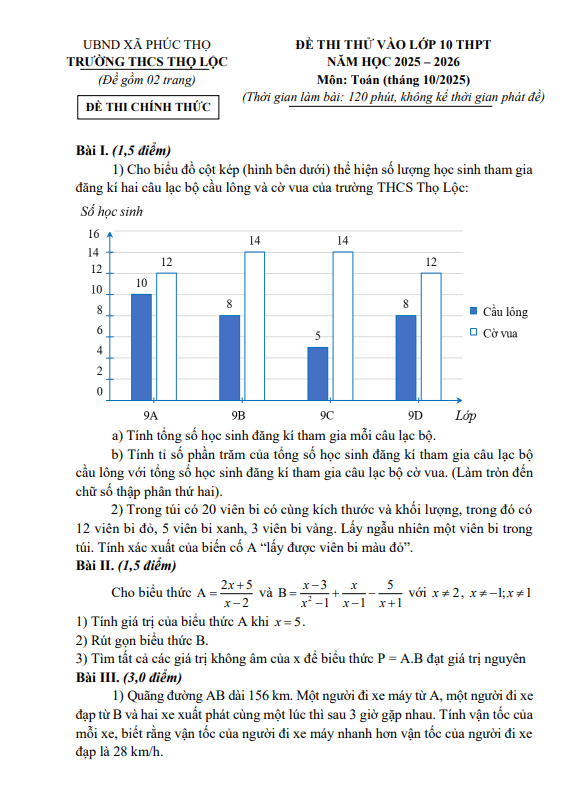 Đề thi thử vào lớp 10 môn Toán năm 2026 trường THCS Thọ Lộc – Hà Nội