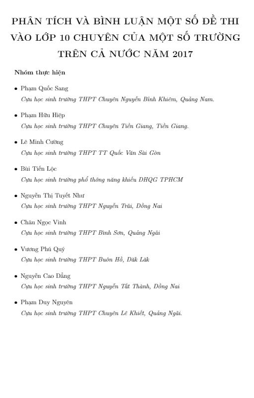 Đề Thi Tuyển Sinh Lớp 10 Môn Toán Phân tích và bình luận một số đề thi vào lớp 10 chuyên của một số trường trên cả nước năm 2017 31/10/2017
