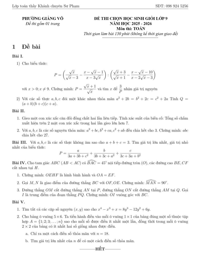 Đề Thi HSG Toán 9 Đề thi học sinh giỏi Toán 9 năm 2017 – 2018 phòng GD&ĐT thành phố Thái Nguyên 25/12/2017