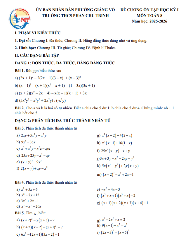 Đề Thi HK1 Toán 8 Đề thi HK1 Toán 8 năm học 2017 – 2018 phòng GD và ĐT thành phố Ninh Bình 27/12/2017