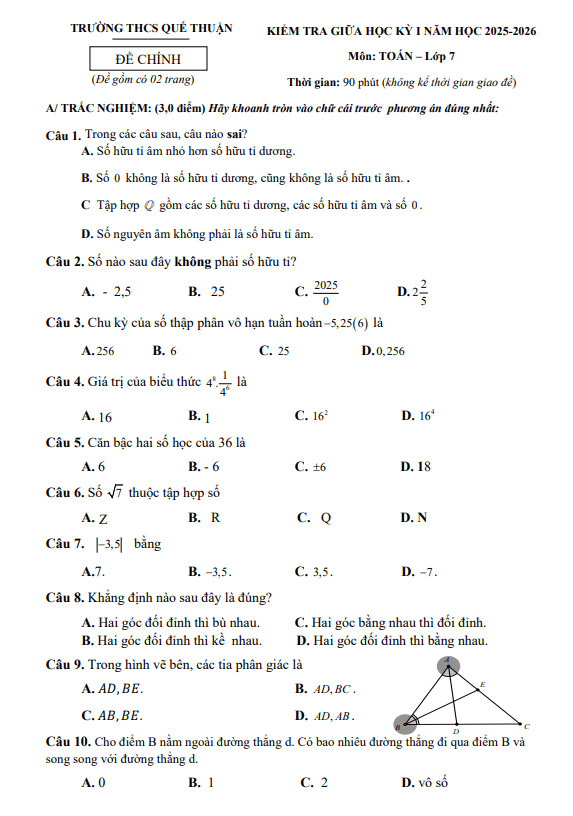 Đề Thi HK1 Toán 7 Đề thi HK1 Toán 7 năm học 2017 – 2018 phòng GD và ĐT thành phố Thanh Hóa 22/12/2017