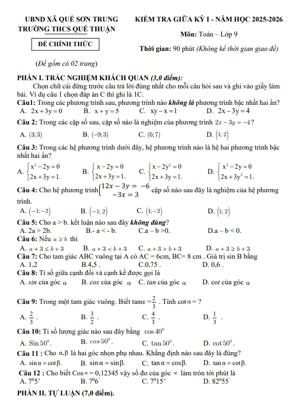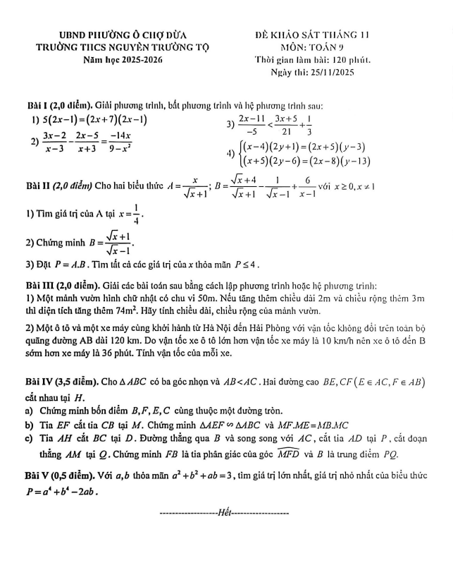 Đề Thi HK1 Toán 9 Đề kiểm tra học kỳ 1 Toán 9 năm học 2017 – 2018 phòng GD và ĐT Vĩnh Tường – Vĩnh Phúc 20/12/2017