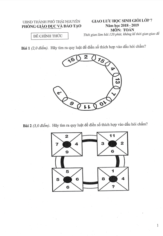 Đề Thi HSG Toán 7 Đề giao lưu học sinh giỏi Toán 7 năm 2018 – 2019 phòng GD&ĐT thành phố Thái Nguyên 25/12/2018