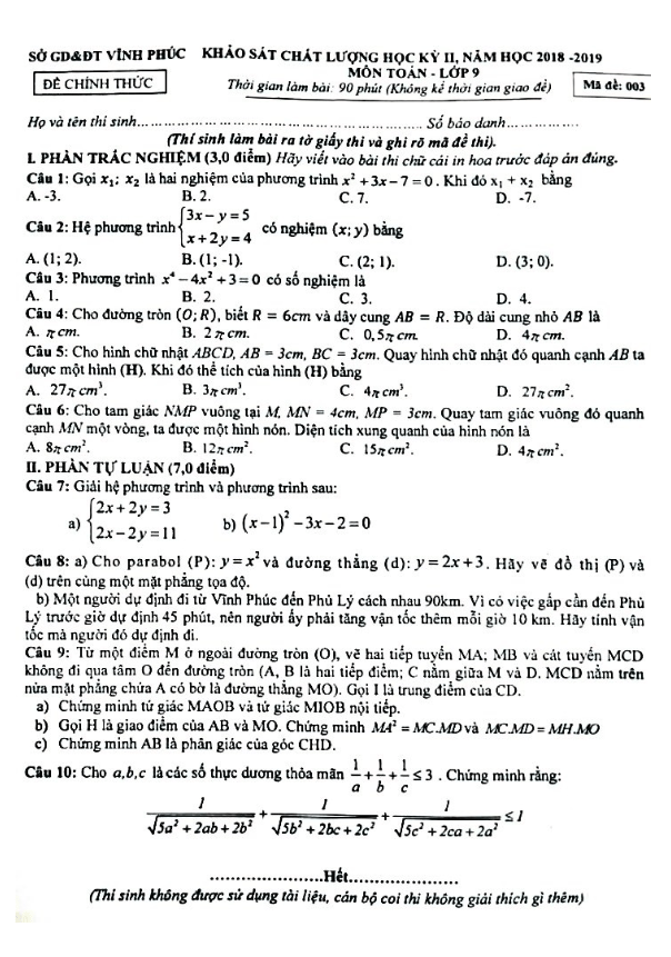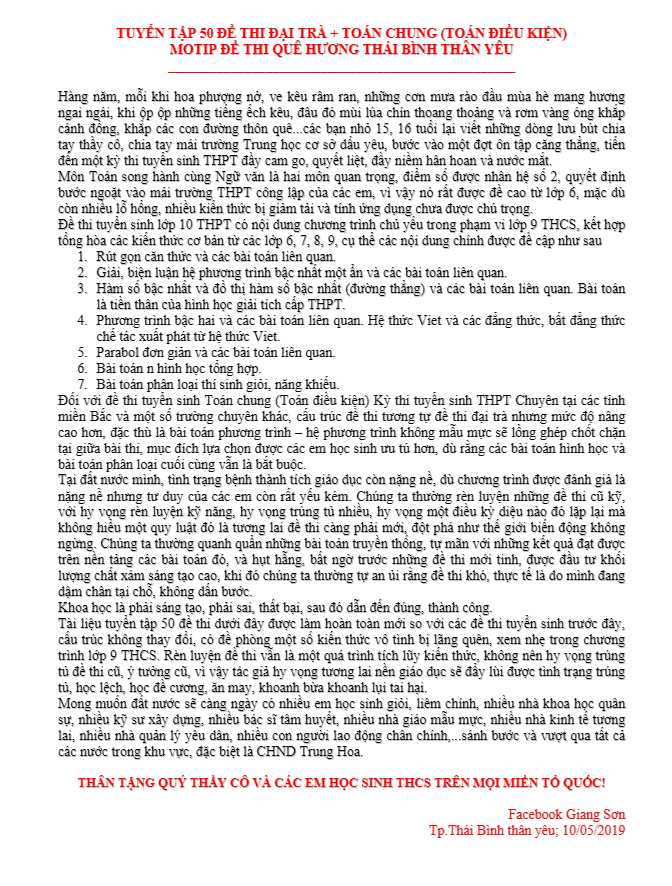 Đề Thi Tuyển Sinh Lớp 10 Môn Toán Tuyển tập 50 đề luyện thi tuyển sinh lớp 10 THPT sở GD&ĐT Thái Bình 11/05/2019