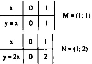 Ta lập bảng giá trị ứng với hai giá trị của $x$ của hai hàm số.