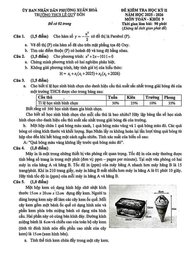 Đề số 19. Đề thi giữa HK1 Toán 9 trường THCS Lê Quý Đôn – Hà Nội (2019 – 2020).