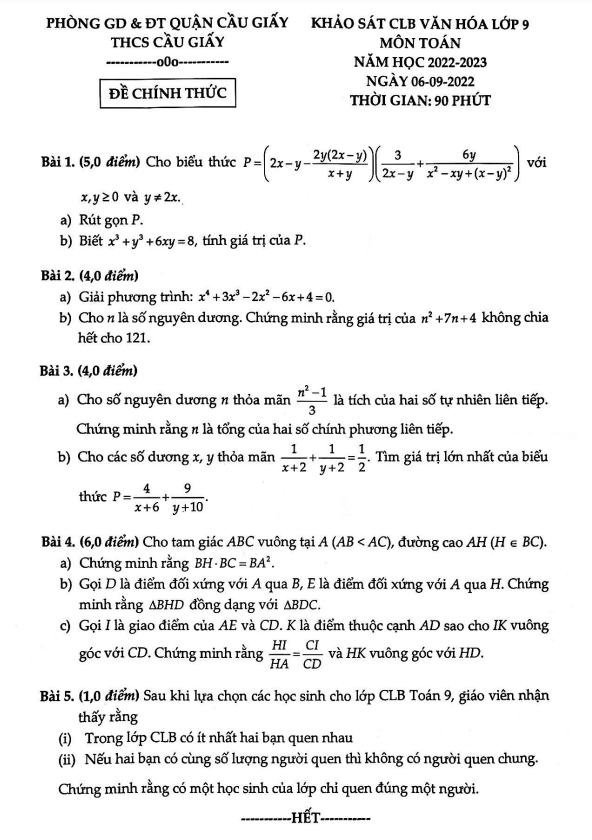 Đề Thi HSG Toán 8 Đề chọn đội tuyển Toán 8 năm 2022 – 2023 hệ thống GD Archimedes School – Hà Nội 07/09/2022