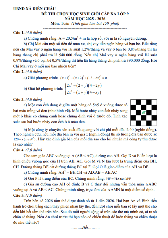 Trích dẫn Đề học sinh giỏi Toán 9 năm 2022 – 2023 trường THCS Lý Nhật Quang – Nghệ An (vòng 2):