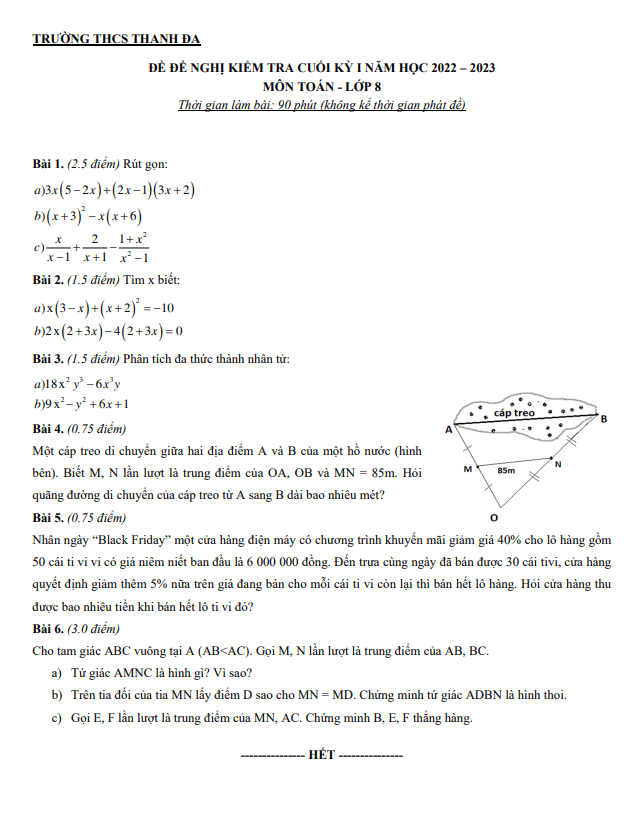 Đề Thi HK1 Toán 8 Đề đề nghị cuối kỳ 1 Toán 8 năm 2022 – 2023 trường THCS Thanh Đa – TP HCM 25/11/2022