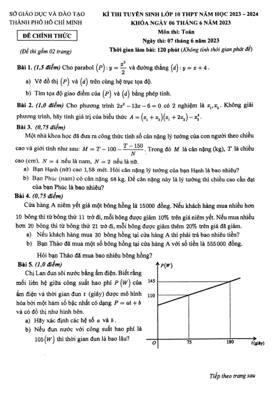 Đề tuyển sinh lớp 10 môn Toán năm 2023 – 2024 sở GD&ĐT TP Hồ Chí Minh