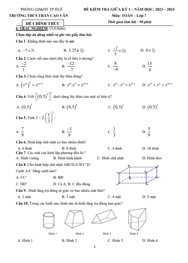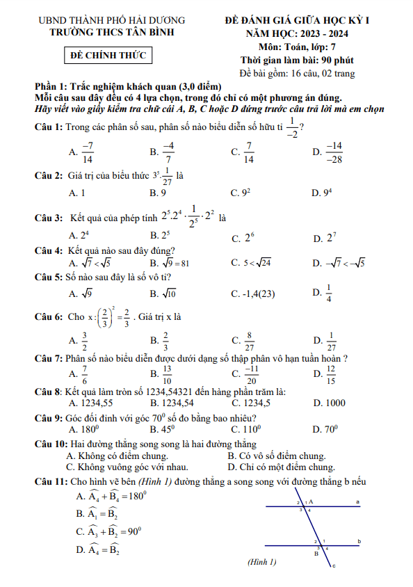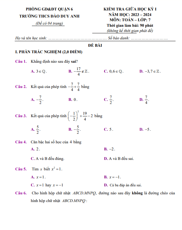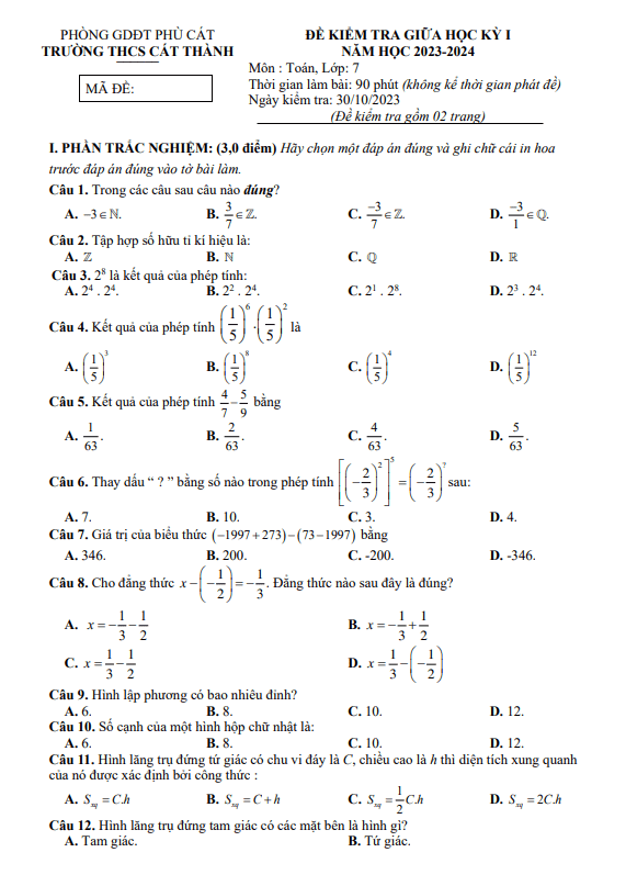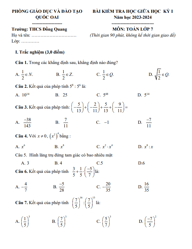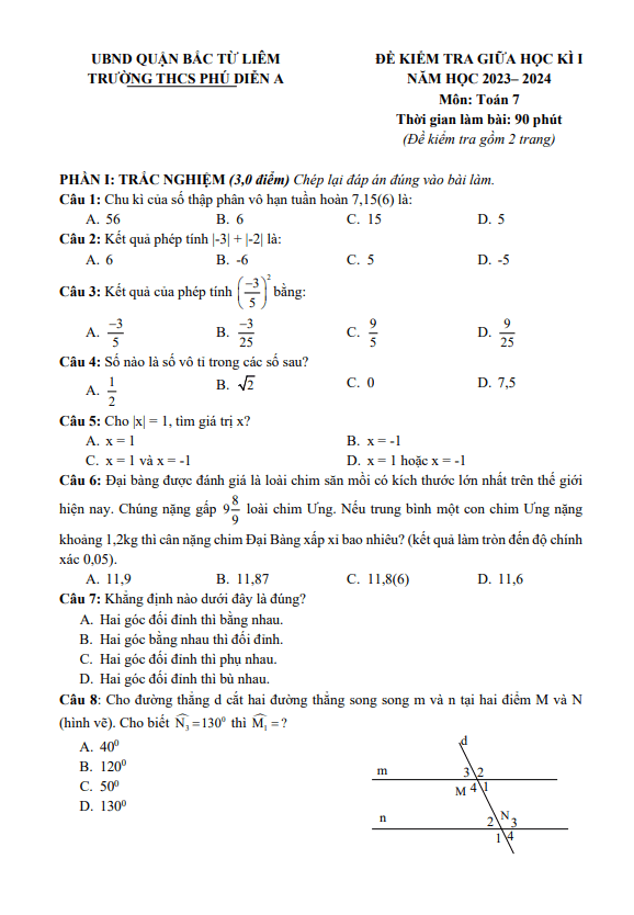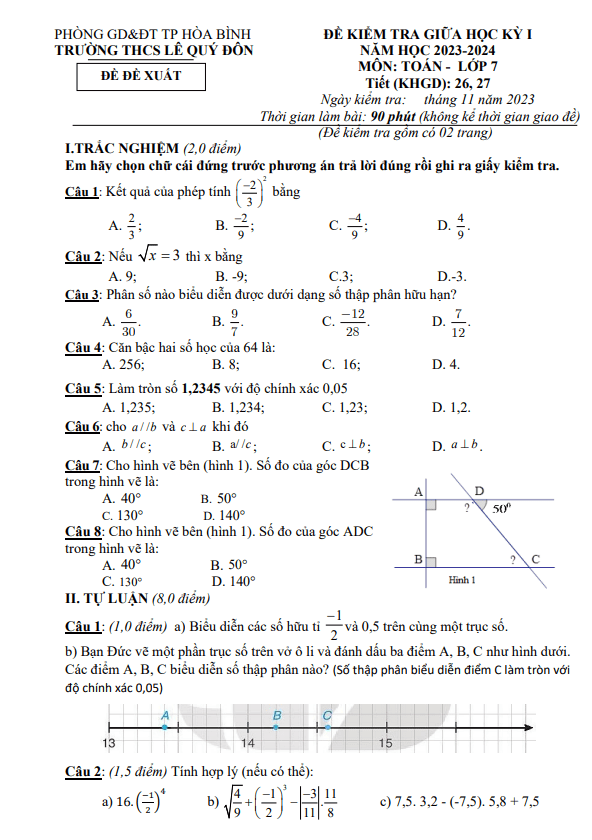 Đề Thi Giữa HK1 Toán 8