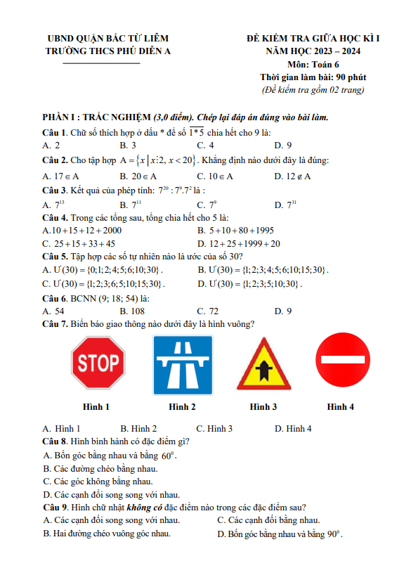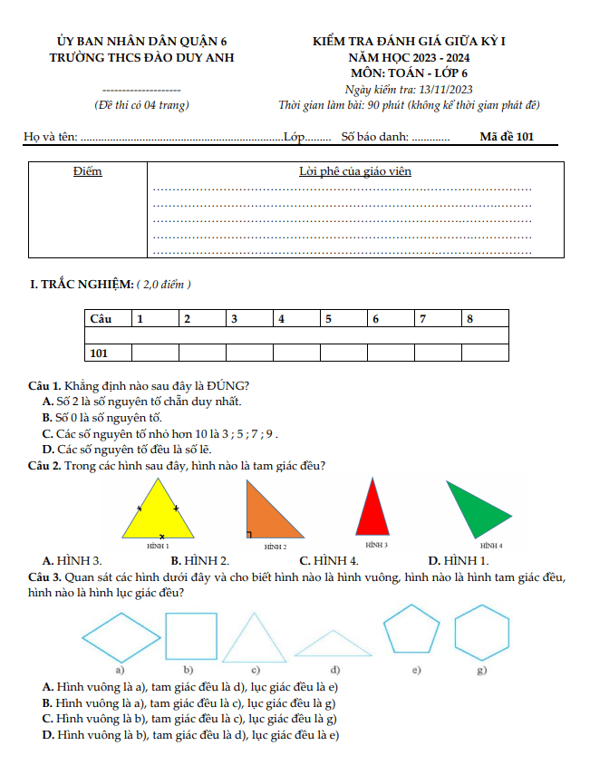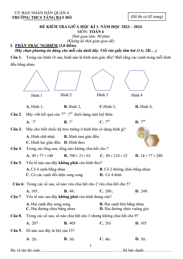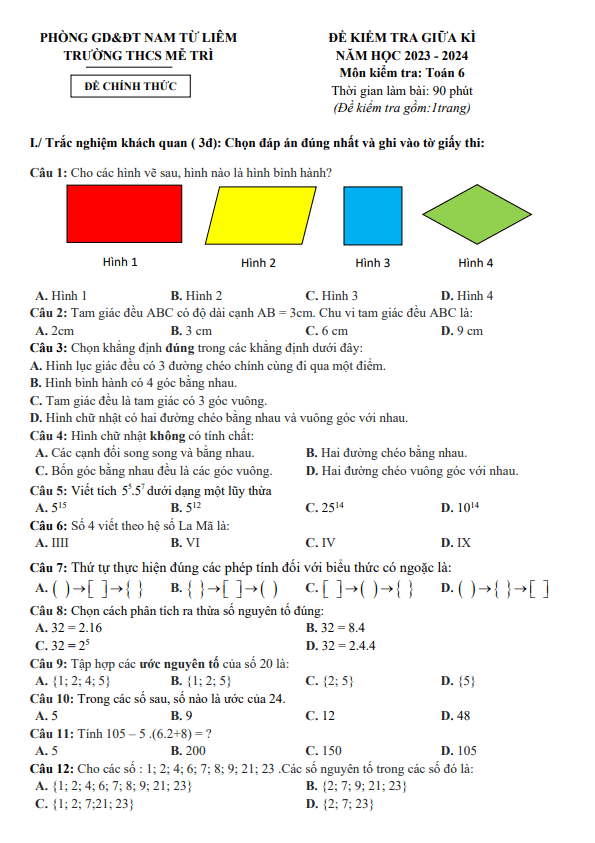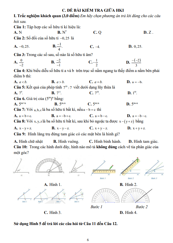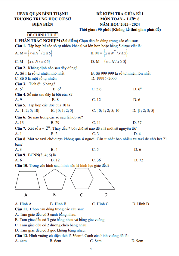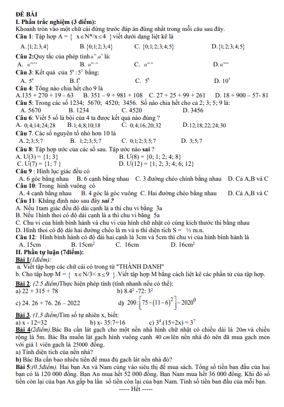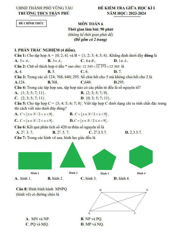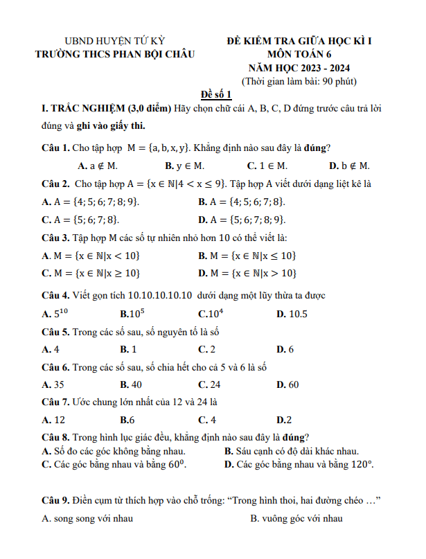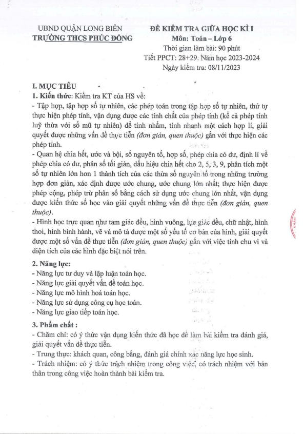 Đề Thi Giữa HK1 Toán 6
