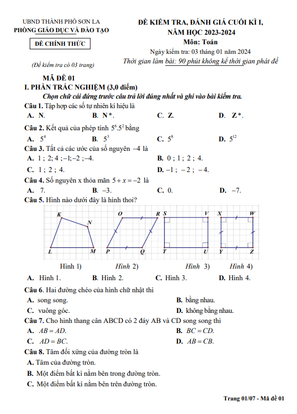 Đề Thi HK1 Toán 6 Đề cuối học kỳ 1 Toán 6 năm 2023 – 2024 trường THCS Lý Thường Kiệt – TP HCM 11/01/2024