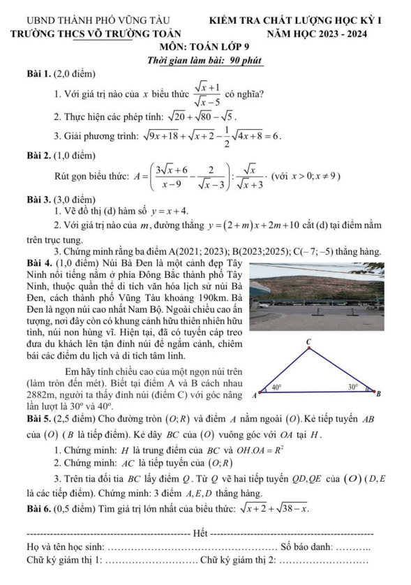 Đề Thi HK1 Toán 6 Đề cuối học kỳ 1 Toán 6 năm 2023 – 2024 trường THCS Nguyễn Bỉnh Khiêm – Hà Nội 08/01/2024