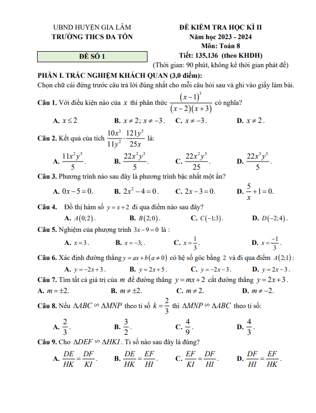 Đề Thi HK2 Toán 8 Đề học kỳ 2 Toán 8 năm 2023 – 2024 trường THCS Vĩnh An – Tân Liên – Hải Phòng 04/05/2024