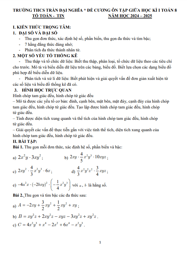 Đề Cương Ôn Tập Toán 8 Đề cương giữa học kì 1 Toán 8 năm 2024 – 2025 trường THCS Trần Đại Nghĩa – BR VT 23/10/2024