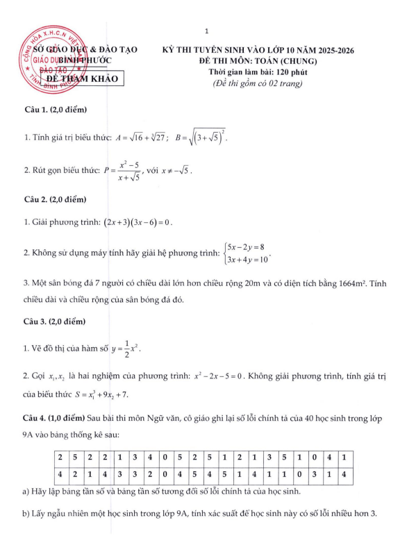 Đề Thi Tuyển Sinh Lớp 10 Môn Toán Đề tham khảo tuyển sinh lớp 10 môn Toán (chung) năm 2025 – 2026 sở GD&ĐT Bình Phước 18/10/2024