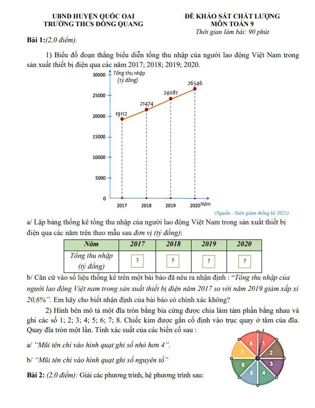 Khảo Sát Chất Lượng Toán 9 Đề khảo sát Toán 9 năm 2024 – 2025 trường THCS Đồng Quang – Hà Nội 11/10/2024