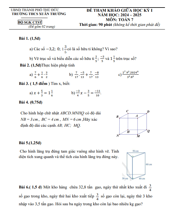 Đề Thi Giữa HK1 Toán 7 Đề tham khảo giữa kỳ 1 Toán 7 năm 2024 – 2025 phòng GD&ĐT Thủ Đức – TP HCM 09/10/2024