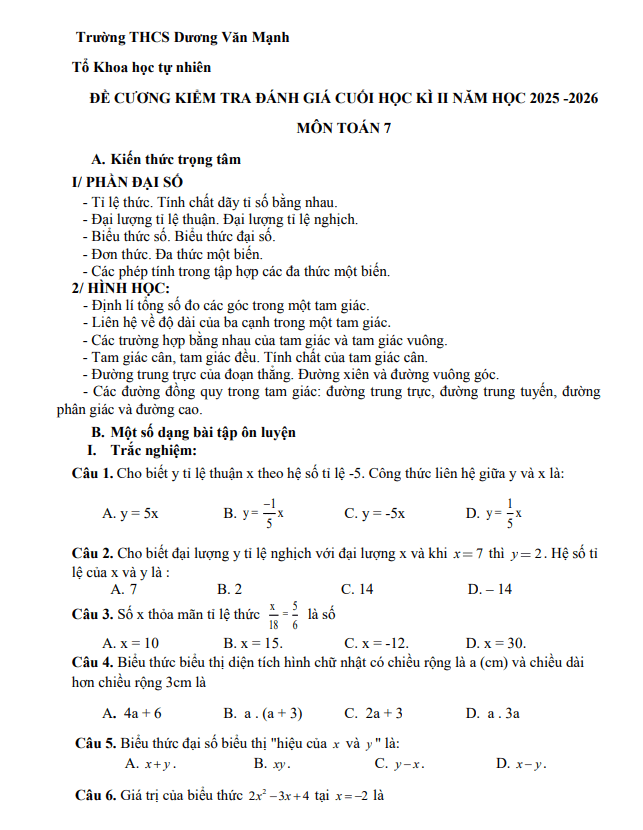 4. Giới hạn kiến thức: Chương trình giáo dục phổ thông môn Toán cấp THCS (chủ yếu là lớp 9).