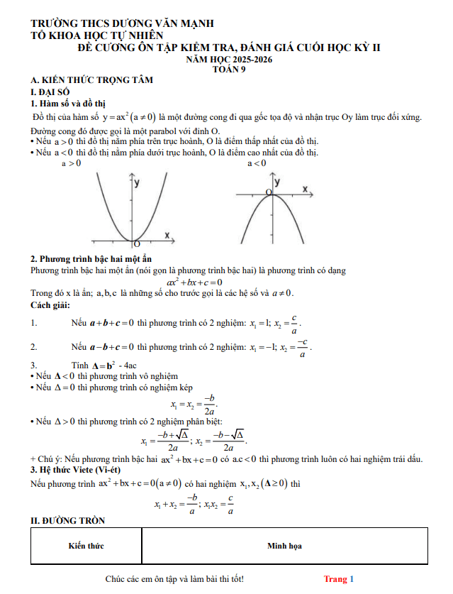 + Phương trình bậc hai một ẩn. Định lí Viète.