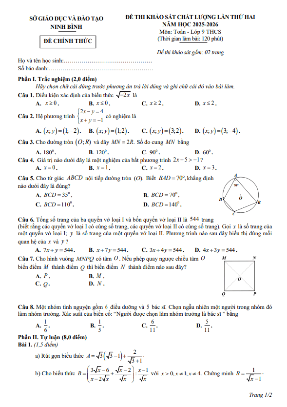 THCS.TOANMATH.com giới thiệu đến quý thầy, cô giáo và các em học sinh lớp 9 đề tham khảo kỳ thi tuyển sinh vào lớp 10 THPT môn Toán năm học 2025 – 2026 sở Giáo dục và Đào tạo tỉnh Thái Nguyên (đề thi dành cho tất cả thí sinh tham dự kỳ thi).