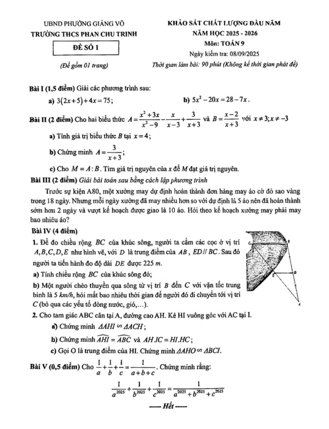 Trích dẫn Đề cuối học kì 1 Toán 8 năm 2024 – 2025 trường THCS Trường Chinh – TP HCM: