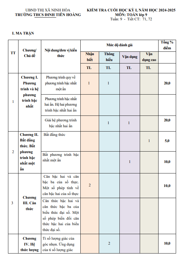 Đề Thi HK1 Toán 9 Đề cuối kỳ 1 Toán 9 năm 2024 – 2025 trường THCS Đinh Tiên Hoàng – Khánh Hòa 19/01/2025