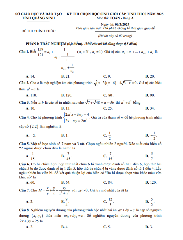 Đề Thi Giữa HK2 Toán 9 Đề giữa kì 2 Toán 9 năm 2024 – 2025 trường THCS Chu Văn An – Bình Dương 29/03/2025
