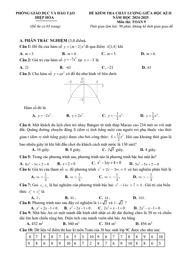 Trích dẫn Đề giữa học kì 2 Toán 9 năm 2024 – 2025 trường THCS Ba Đình – Hà Nội:
