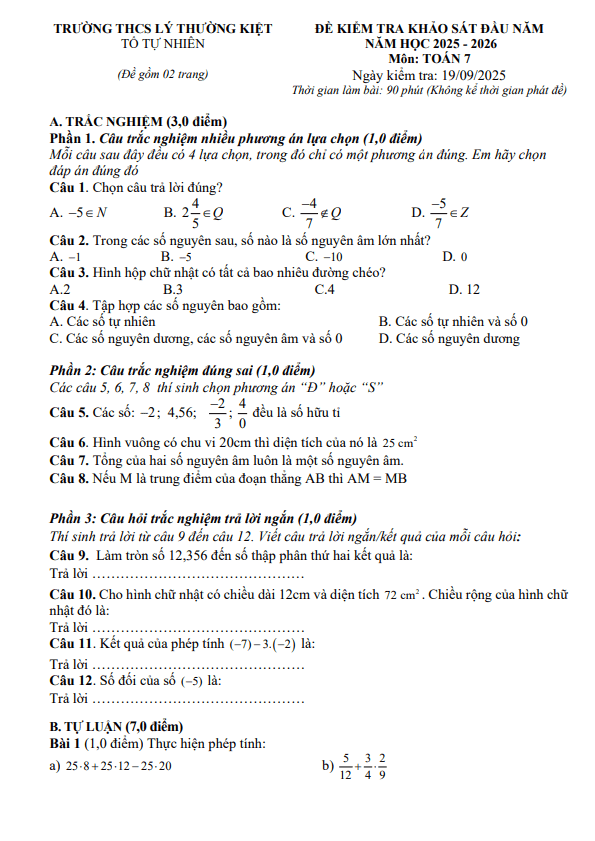 THCS.TOANMATH.com giới thiệu đến quý thầy, cô giáo và các em học sinh lớp 9 đề kiểm tra cuối học kì 2 môn Toán 9 năm học 2024 – 2025 trường THCS Đỗ Đăng Tuyển, thành phố Đà Nẵng. Đề thi gồm 04 câu trắc nghiệm nhiều lựa chọn + 01 câu trắc nghiệm đúng sai + 02 câu trắc nghiệm trả lời ngắn + 05 câu tự luận, thời gian làm bài 90 phút.