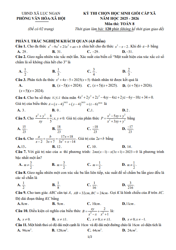Phần xác suất thống kê: