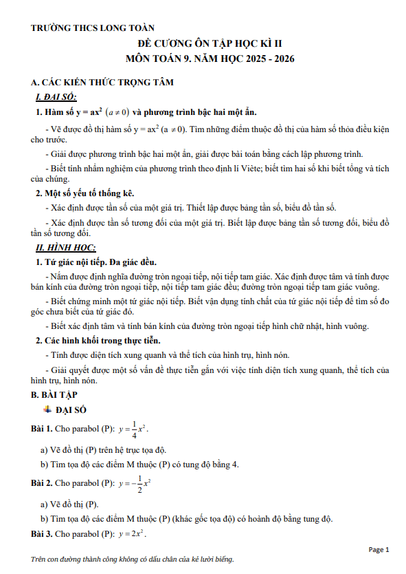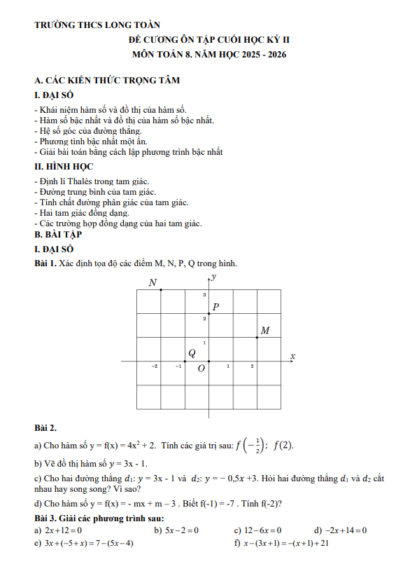THCS.TOANMATH.com giới thiệu đến quý thầy, cô giáo và các em học sinh lớp 6 đề cương ôn tập cuối học kì 2 môn Toán 6 năm học 2024 – 2025 trường THCS Dương Văn Mạnh, tỉnh Bà Rịa – Vũng Tàu.