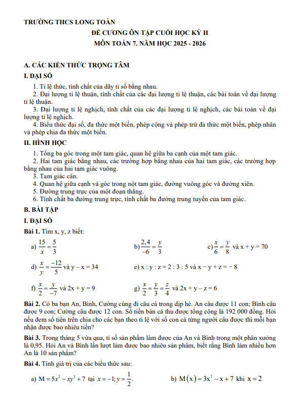 Đề cương cuối kì 2 Toán 8 năm 2024 – 2025 trường THCS Dương Văn Mạnh – BR VT