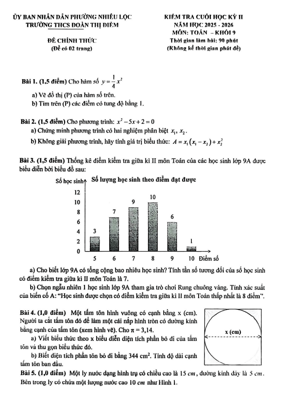 Đề cuối học kỳ 2 Toán 7 năm 2024 – 2025 phòng GD&ĐT Hoài Nhơn – Bình Định