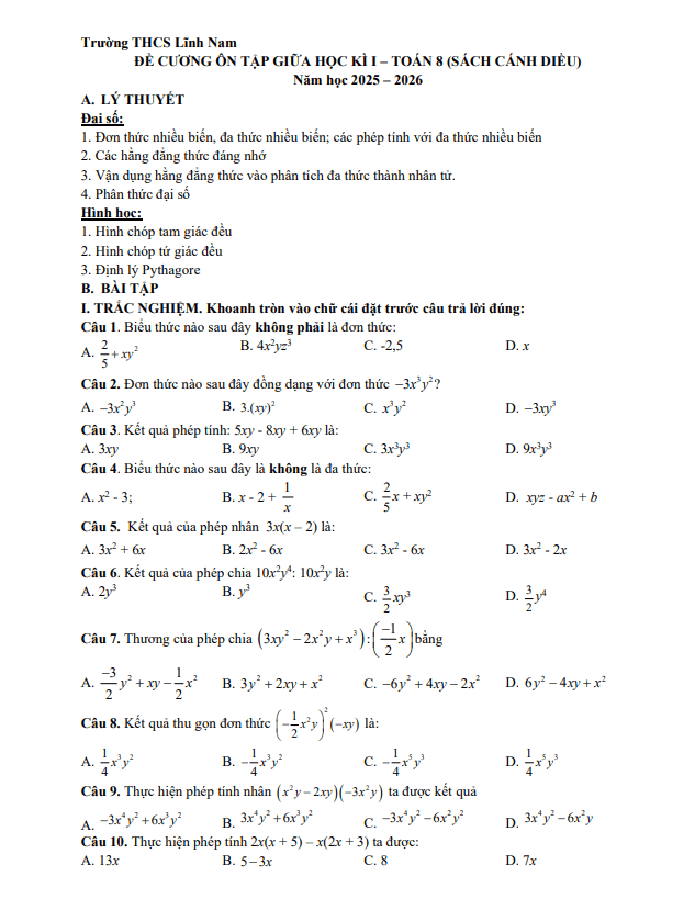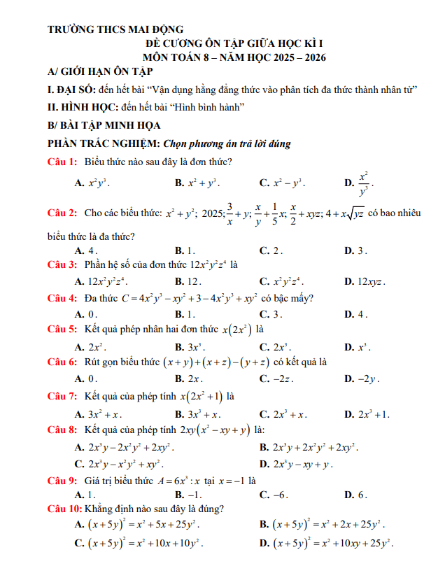 THCS.TOANMATH.com giới thiệu đến quý thầy, cô giáo và các em học sinh lớp 8 đề cương ôn tập cuối học kỳ 2 môn Toán 8 năm học 2024 – 2025 trường THCS Mạo Khê 2, thành phố Đông Triều, tỉnh Quảng Ninh.