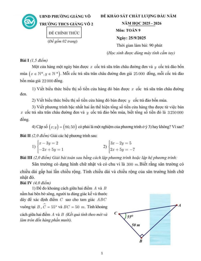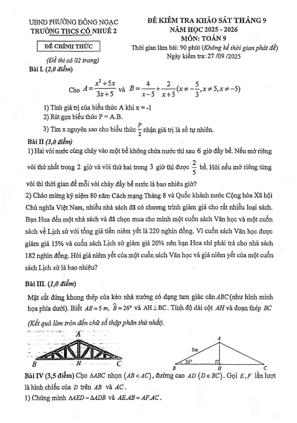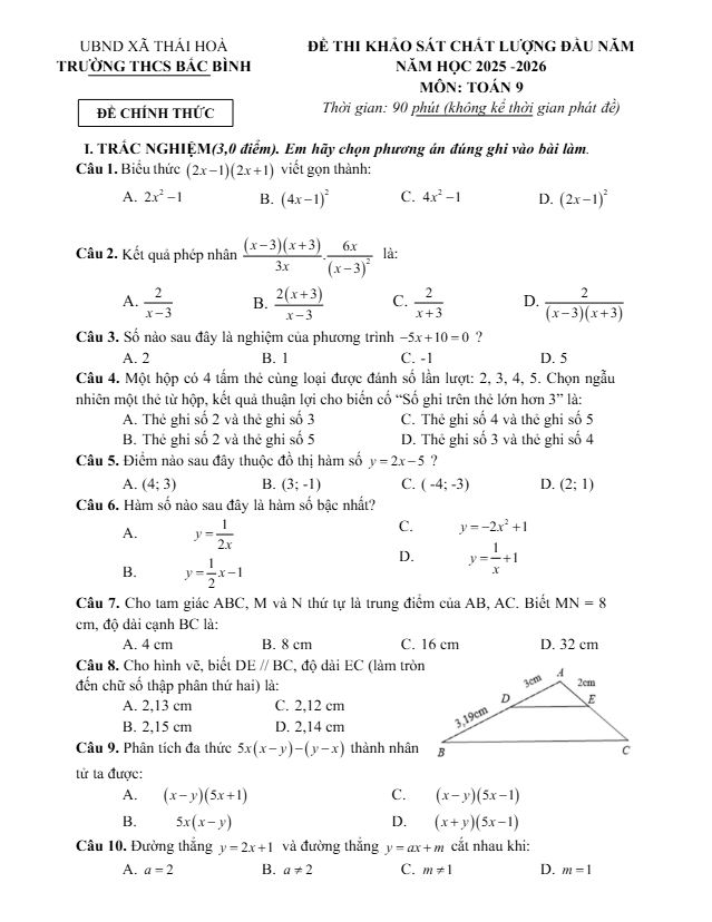 Trích dẫn Đề tuyển sinh lớp 10 môn Toán năm 2025 – 2026 sở GD&ĐT Bắc Ninh: