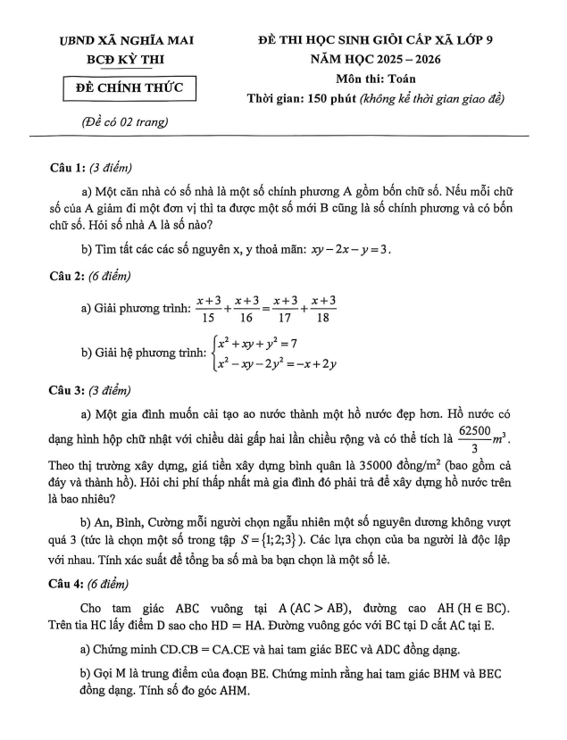 Trích dẫn Đề chọn học sinh giỏi Toán 9 năm 2025 – 2026 xã Diễn Châu – Nghệ An: