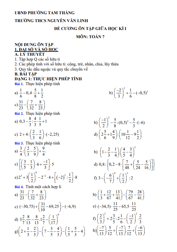 Đề cương giữa kì 1 Toán 7 năm 2025 – 2026 trường THCS Nguyễn Văn Linh – TP HCM