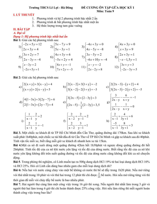 2. Hệ hai phương trình bậc nhất hai ẩn.