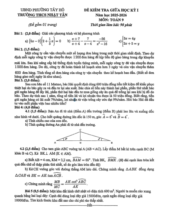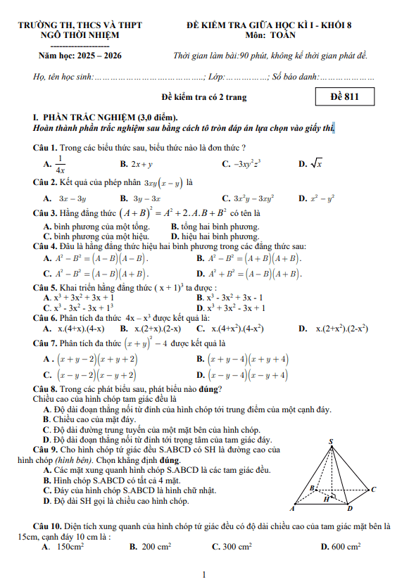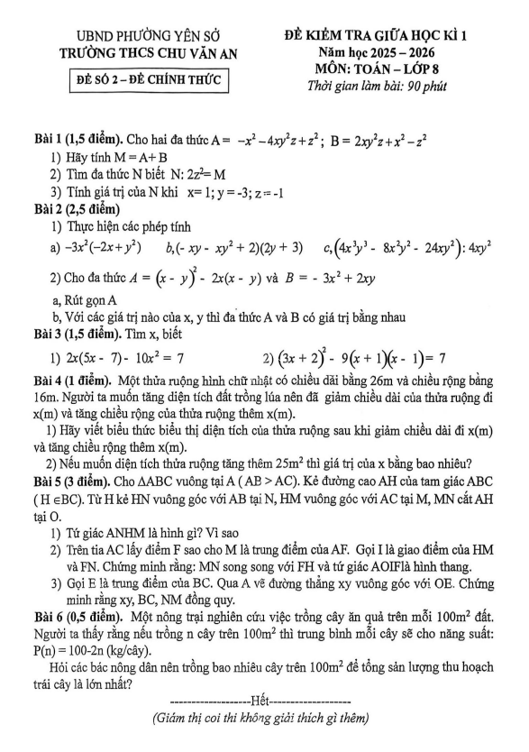 Ma trận Đề giữa học kì 1 Toán 8 năm 2025 – 2026 trường THCS Phú Lợi – TP HCM: