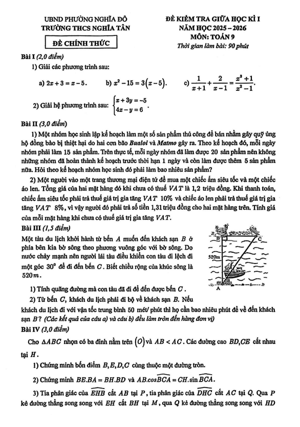 Trích dẫn Đề giữa học kỳ 1 Toán 9 năm 2025 – 2026 trường THCS Hải Phúc – Ninh Bình: