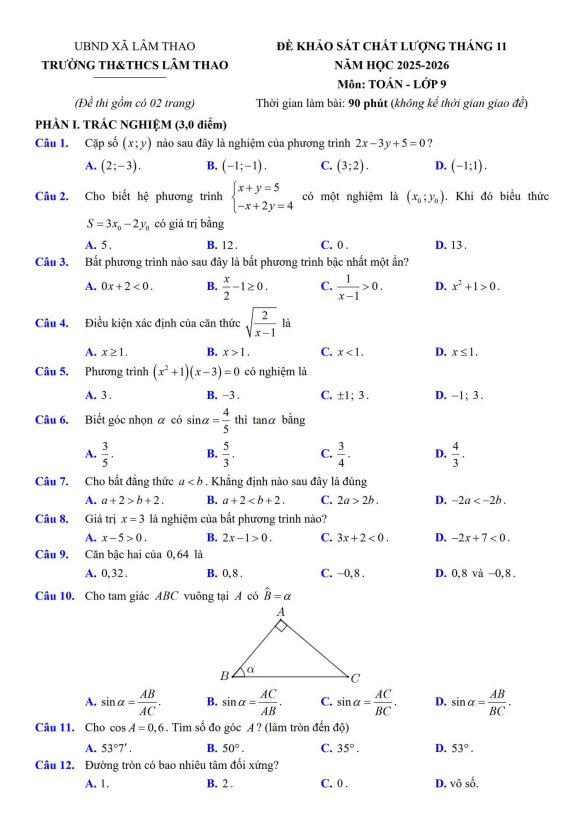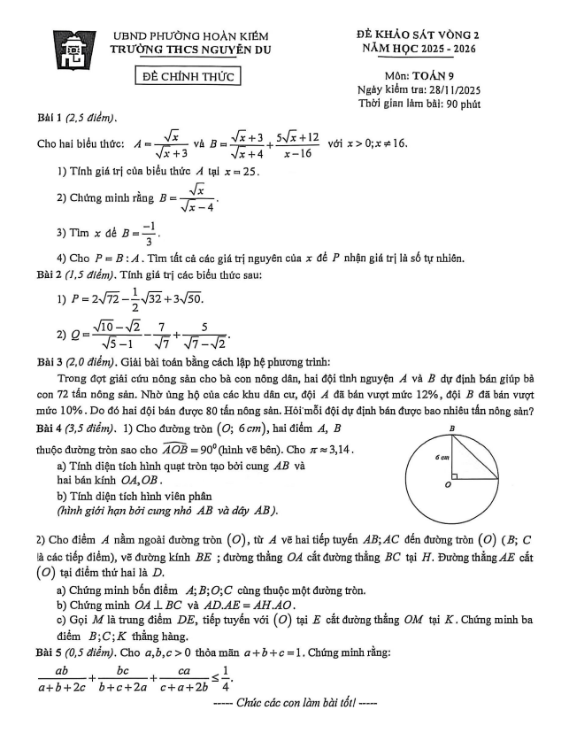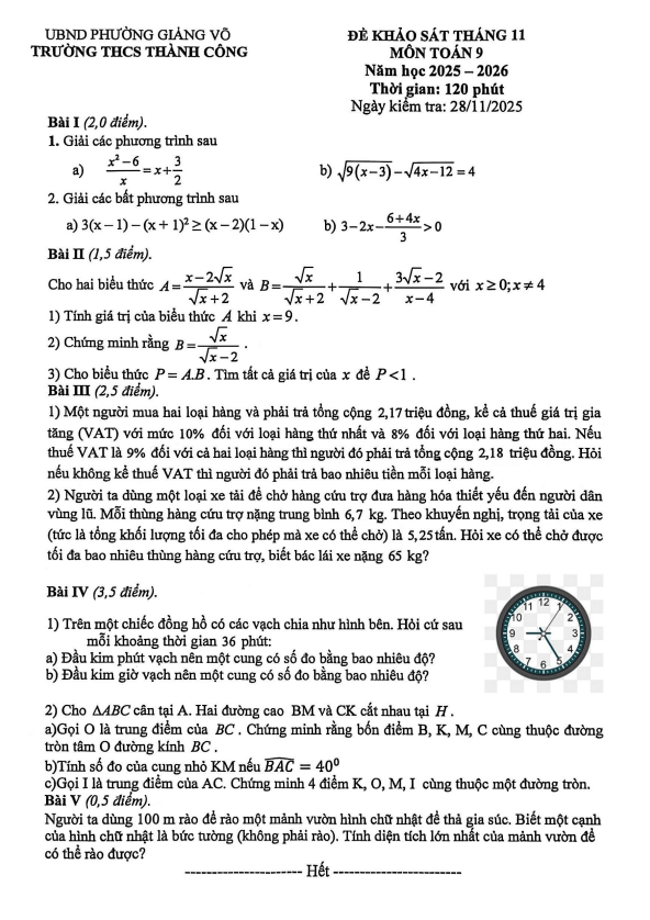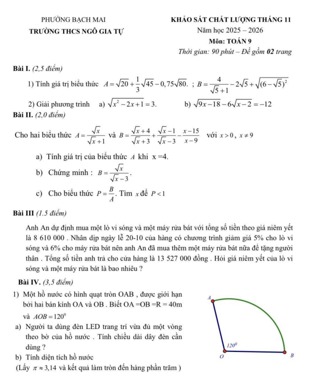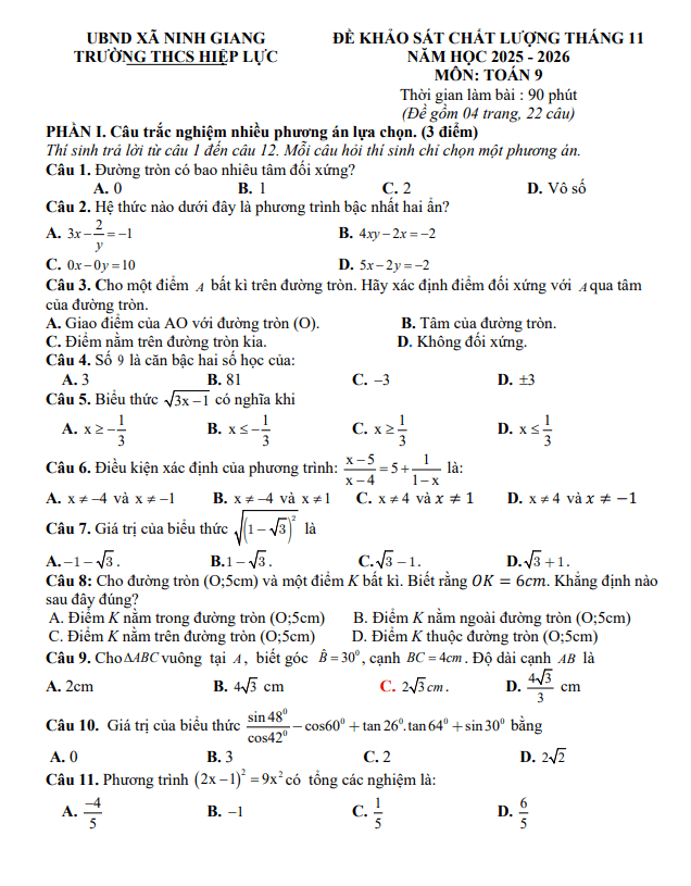 Trích dẫn Đề khảo sát Toán 9 tháng 11 năm 2025 trường THCS Nhật Tân – Hà Nội: