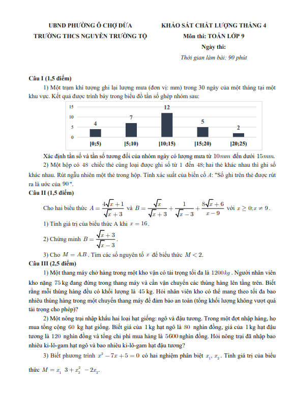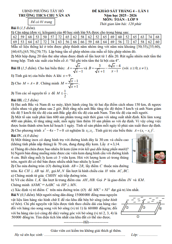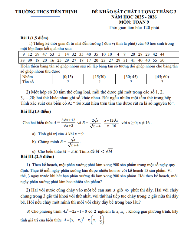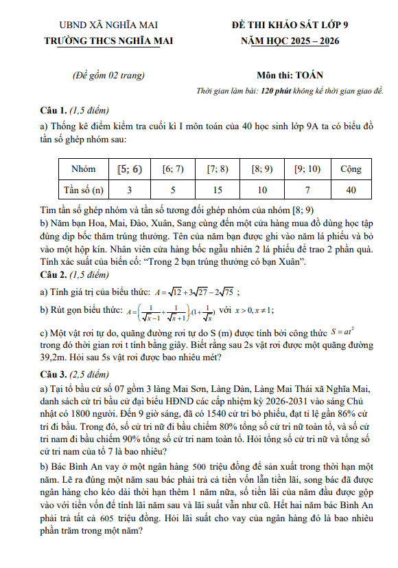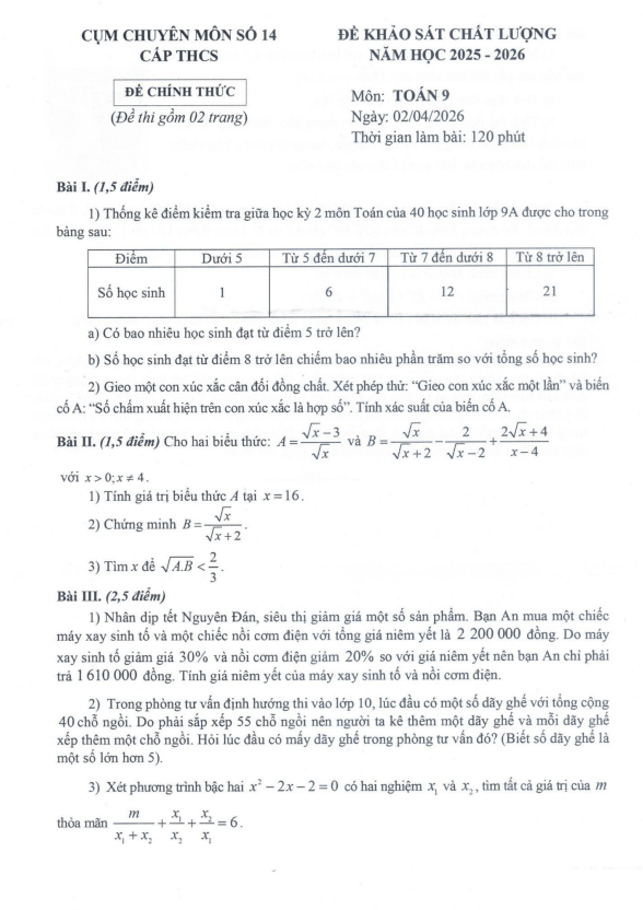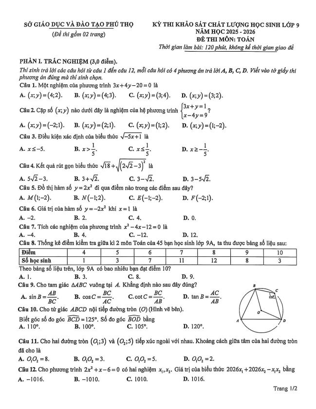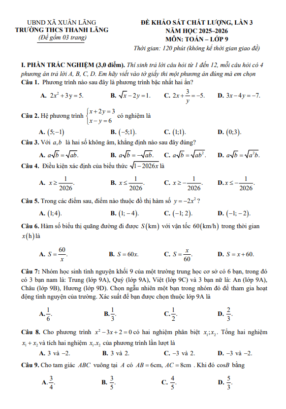 Trích dẫn Đề khảo sát chất lượng Toán 9 năm 2025 – 2026 sở GD&ĐT Hà Tĩnh: