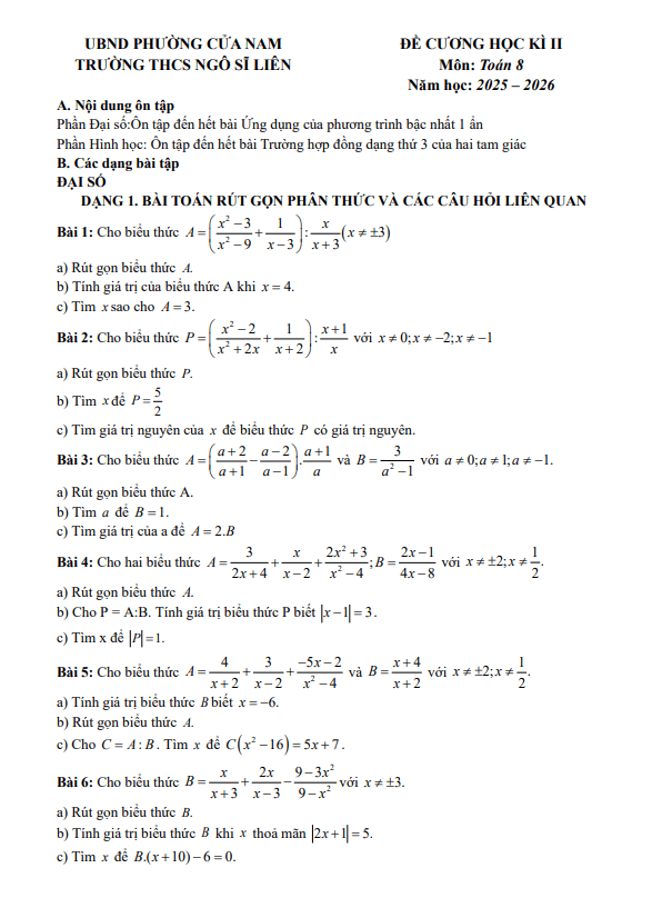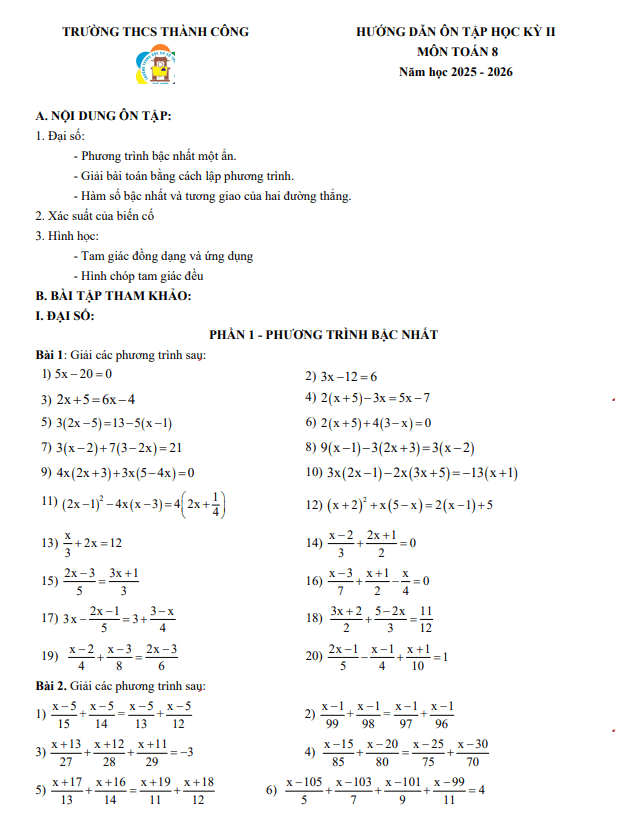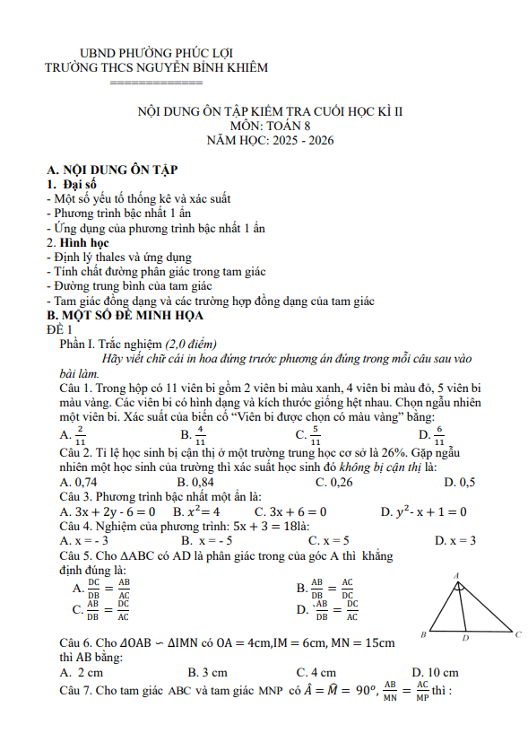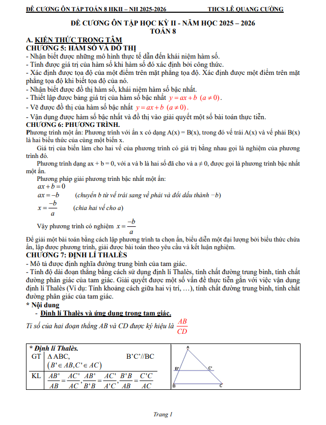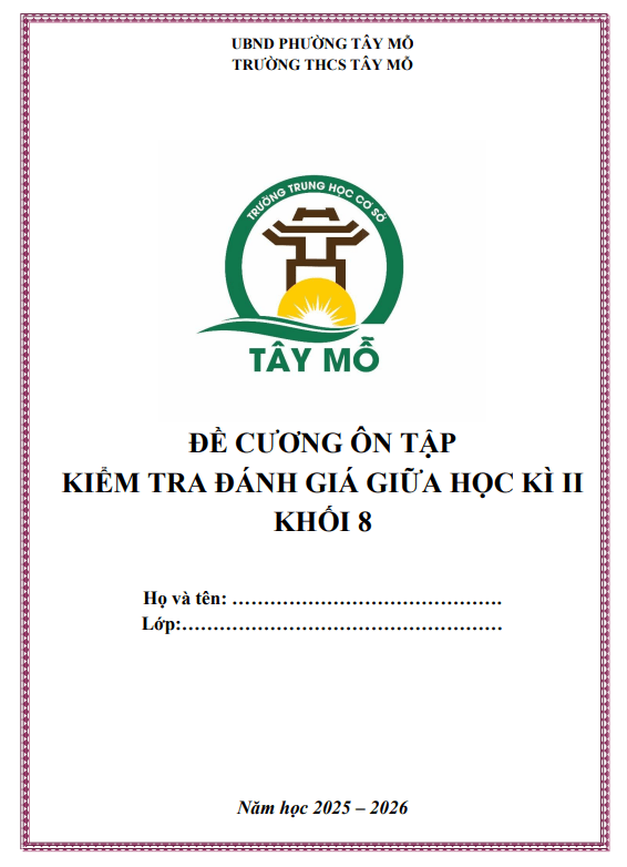THCS.TOANMATH.com giới thiệu đến quý thầy, cô giáo và các em học sinh đề cương hướng dẫn nội dung ôn tập cuối học kỳ 2 môn Toán 8 năm học 2025 – 2026 trường THCS Ngọc Thụy, phường Bồ Đề, thành phố Hà Nội.