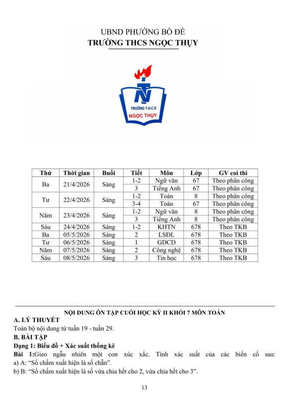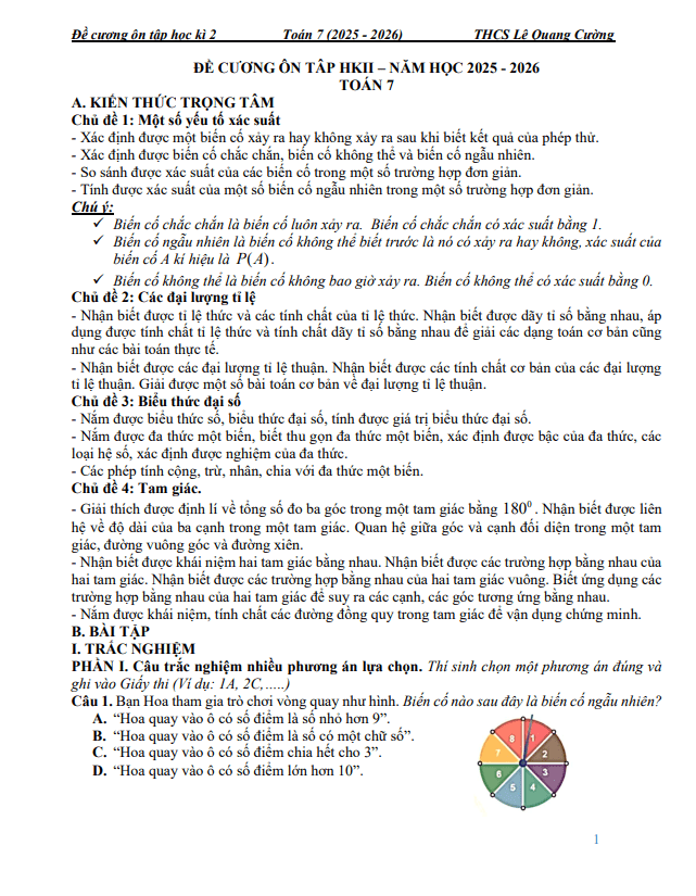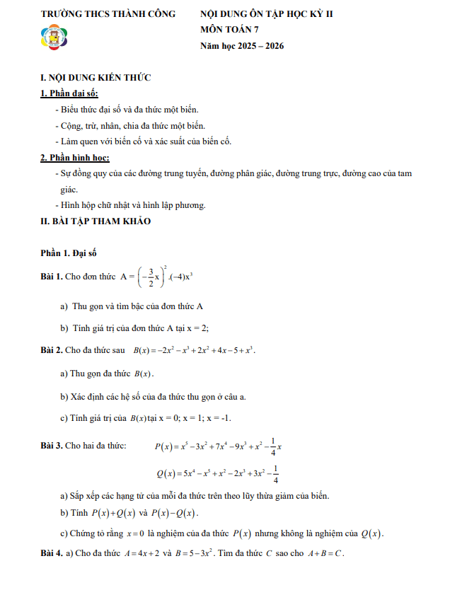 THCS.TOANMATH.com giới thiệu đến quý thầy, cô giáo và các em học sinh đề cương hướng dẫn nội dung ôn tập kiểm tra cuối học kì 2 môn Toán 7 năm học 2025 – 2026 trường THCS Nguyễn Bỉnh Khiêm, phường Phúc Lợi, thành phố Hà Nội.