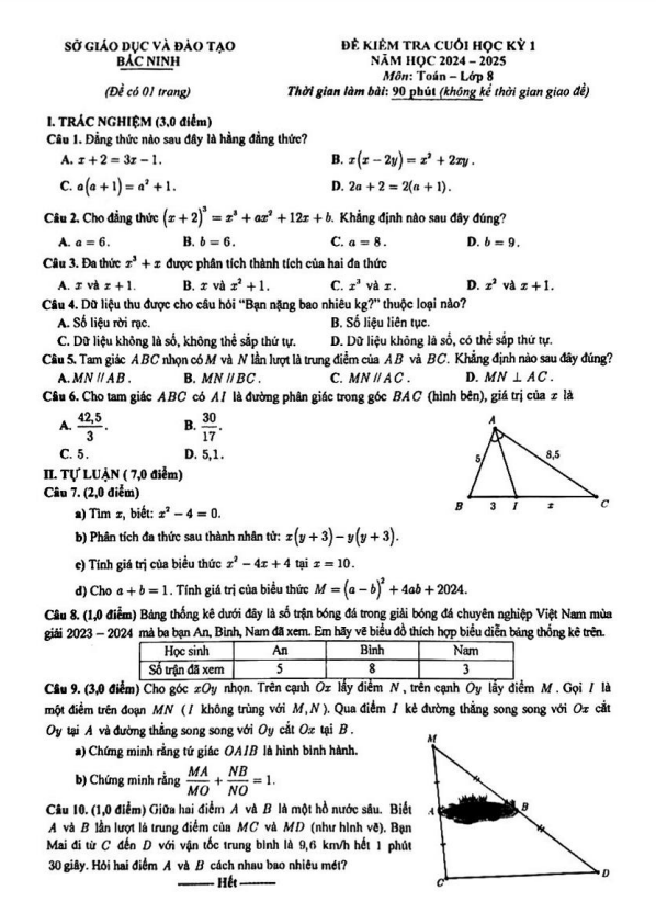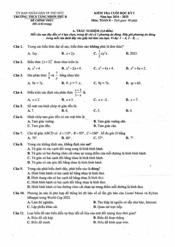Đề Thi HK1 Toán 8 Đề cuối học kỳ 1 Toán 8 năm 2024 – 2025 trường THCS Tăng Nhơn Phú B – TP HCM 25/12/2024
