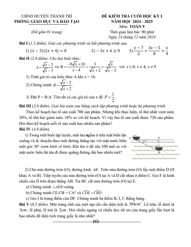 Đề Thi HK1 Toán 7 Đề cuối học kỳ 1 Toán 7 năm 2024 – 2025 phòng GD&ĐT Thủ Dầu Một – Bình Dương 27/12/2024