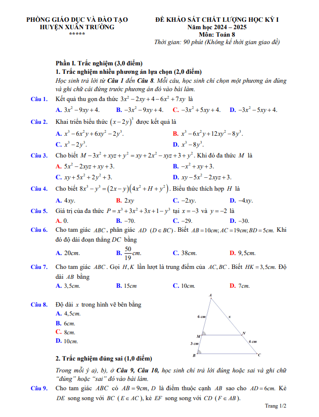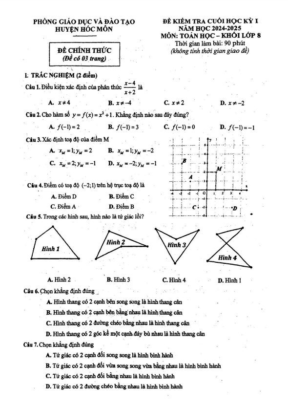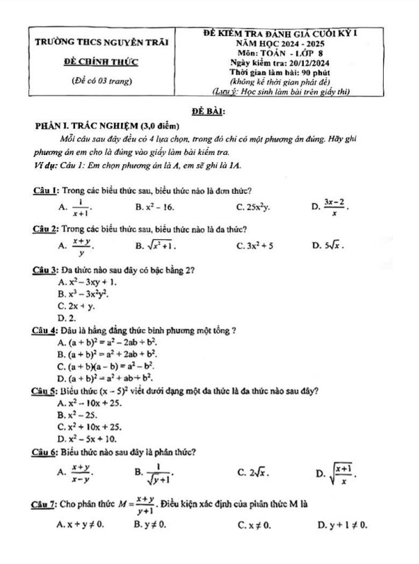 Đề Thi HK1 Toán 8 Đề cuối học kỳ 1 Toán 8 năm 2024 – 2025 trường THCS Tăng Nhơn Phú B – TP HCM 25/12/2024